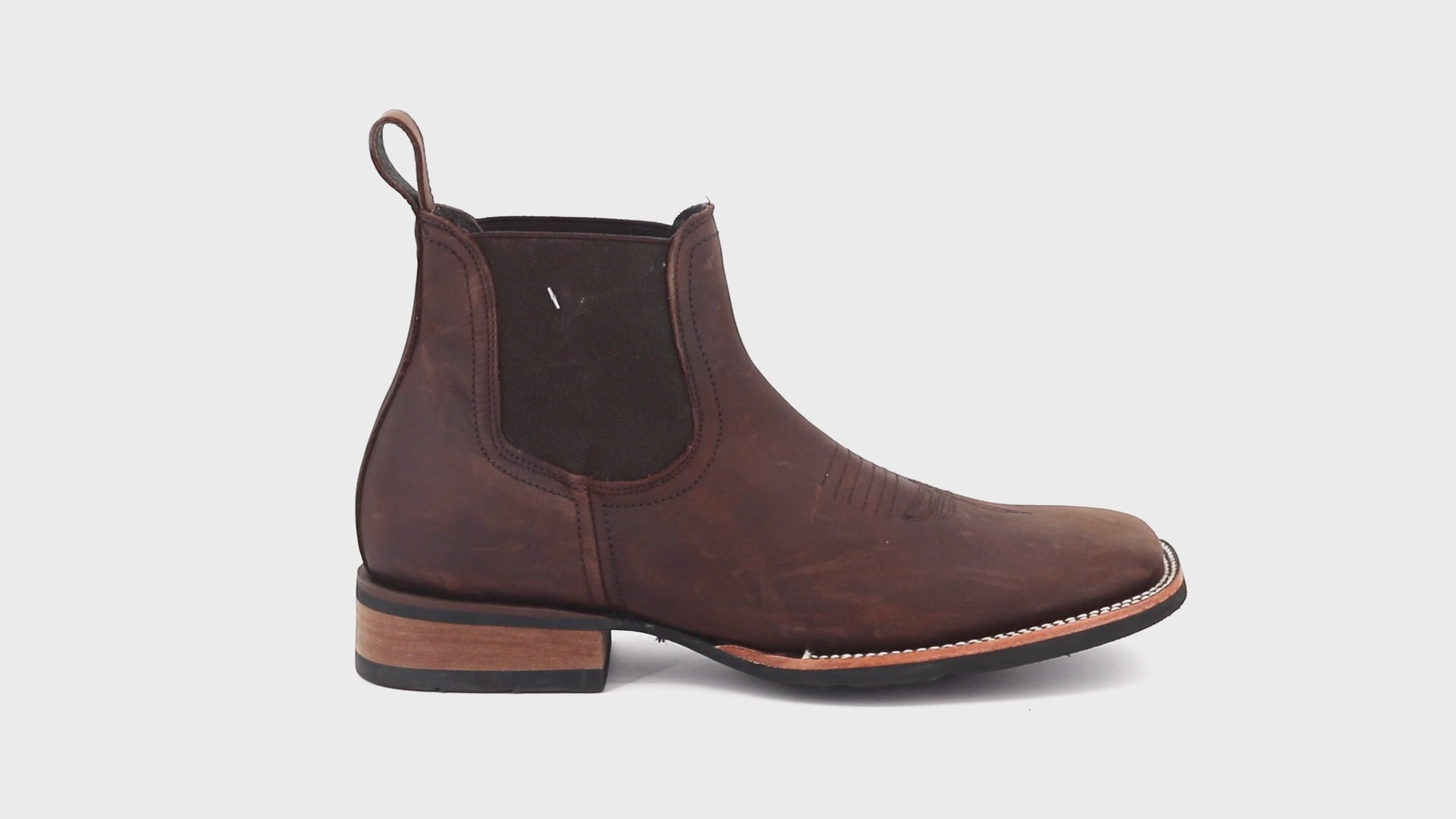 These men’s short western boots offer a clean, versatile design built for everyday comfort and style. Crafted from genuine leather, they feature elastic side panels for flexibility and a leather pull strap at the back of the shaft for easy slip-on wear. Inside, the smooth leather lining provides lasting comfort throughout the day. The square toe is accented with a subtle ringle detail that adds classic western character, while the durable rubber sole delivers reliable grip and stability on a variety of surfaces. Comfortable, practical, and effortlessly western—ideal for daily wear on or off the ranch.