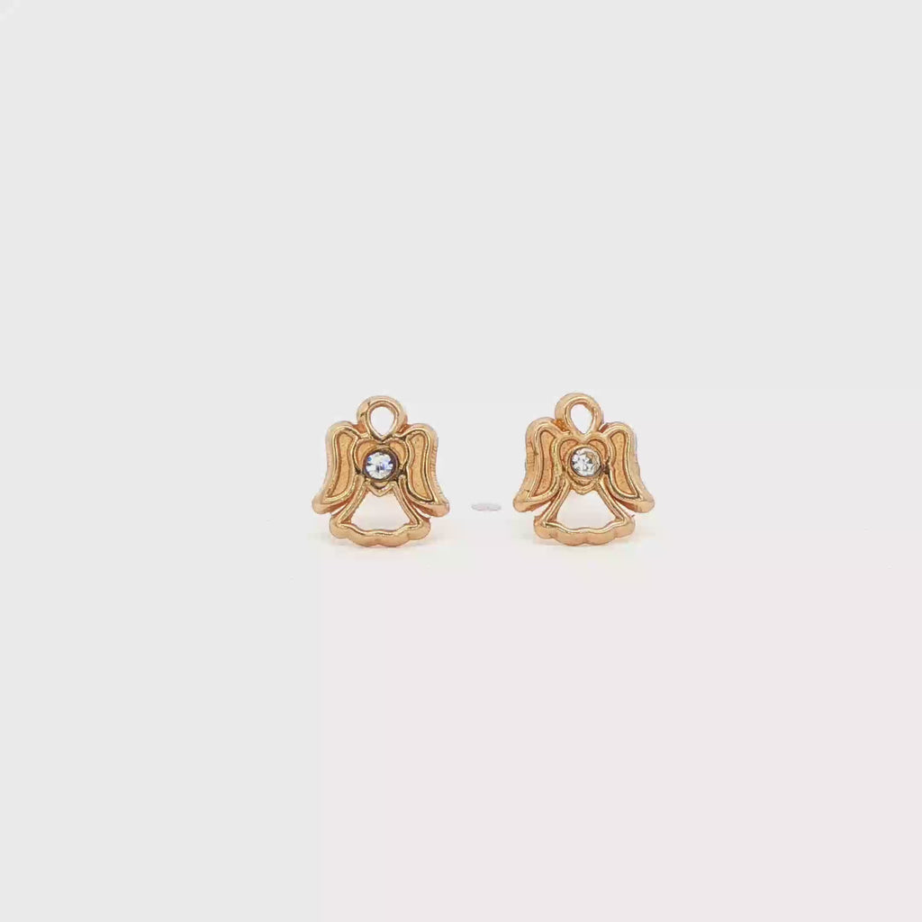 Yellow Gold 10K Angel Stud Earrings with Round Cut Cz